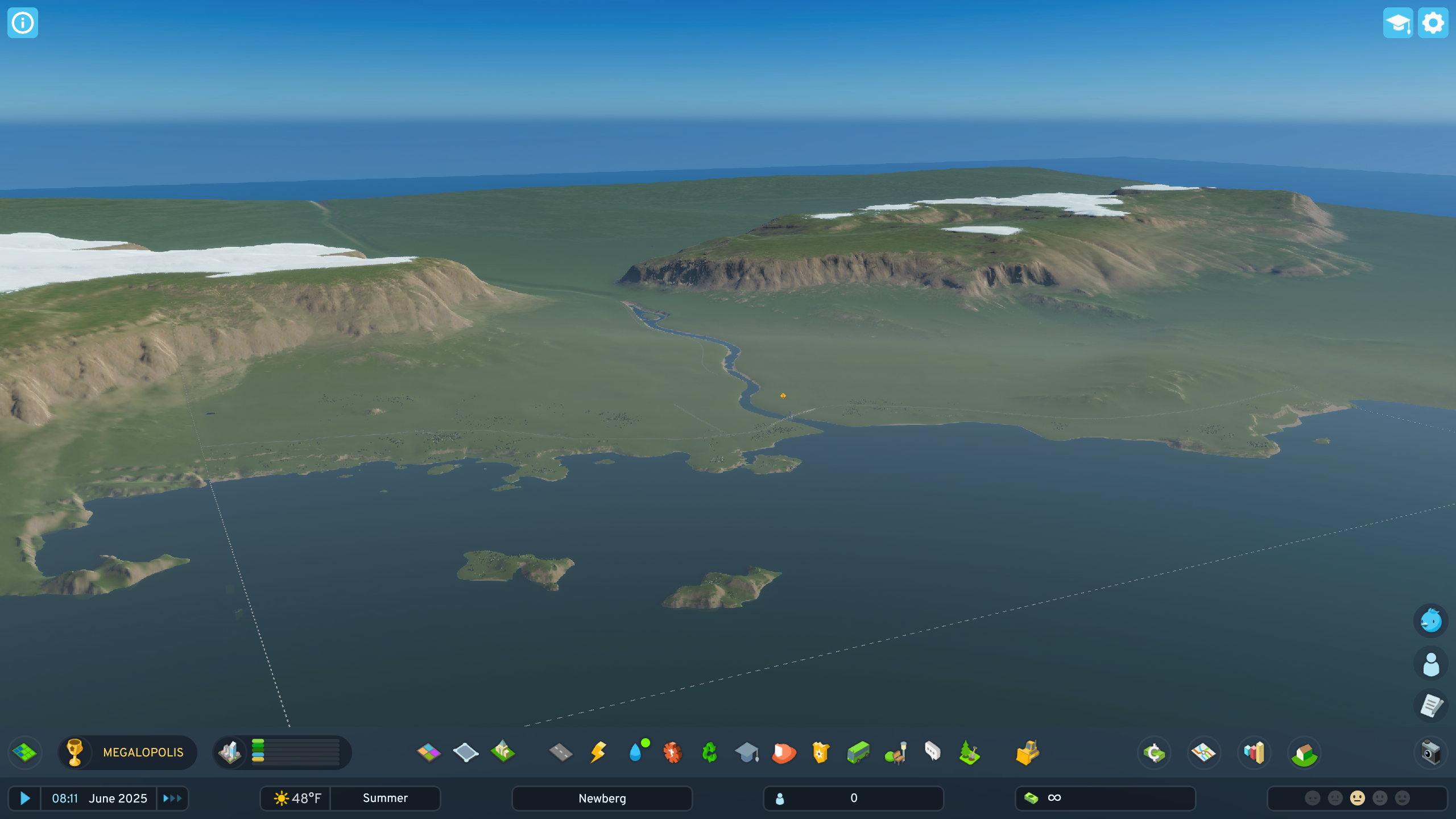 Here’s a new Cities Skylines II city that I’m starting. And it appears that I can only name cities with a -berg suffix. The next one will be called Iceberg. I’m serious.