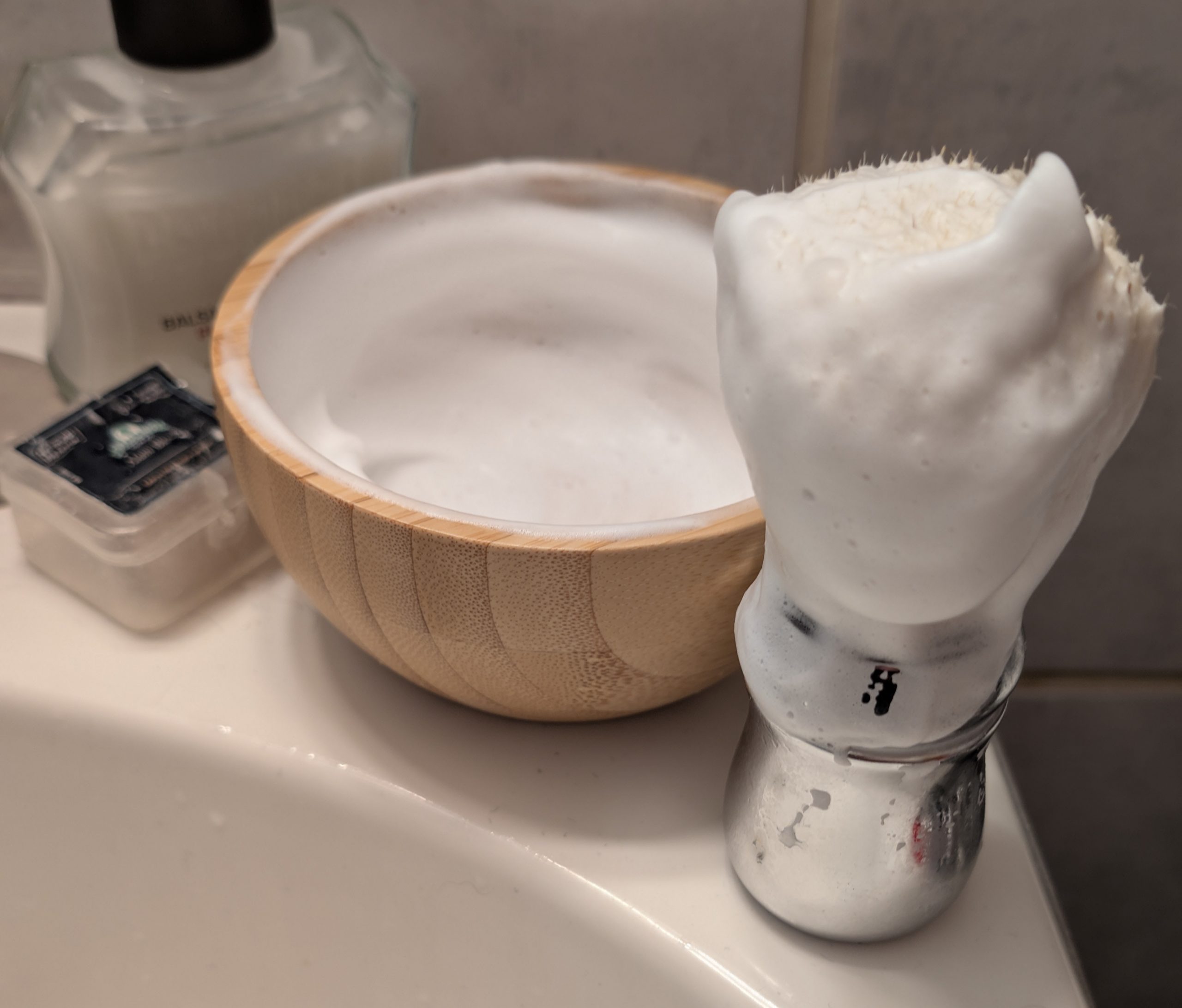 Let me first talk briefly about my criteria for what makes a lather great: as someone with sensitive skin, a lather needs to provide great lubrication for the shave so that the razor glides comfortably across my skin and doesn’t grab, skip, or stick. It needs to protect the skin so that I don’t get cuts or irritation easily from the blade. It needs to contribute to a close shave by standing the beard hairs upright so they can be cut more easily by the blade. It needs to be non-irritating to my skin and have either no fragrance or a pleasant fragrance that I don’t consider to be too strong or off-putting.