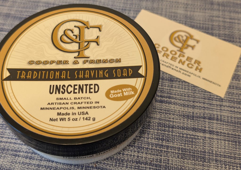 8. Cooper & French Unscented Shave Soap. I stumbled across this while trying to see if there were any shave soap producers located near me, and oddly enough, this home-based company is located about 8 blocks from my house. This is also a tallow-based lather which produces a slick and thick lather that always works well for me with no noticeable scent.