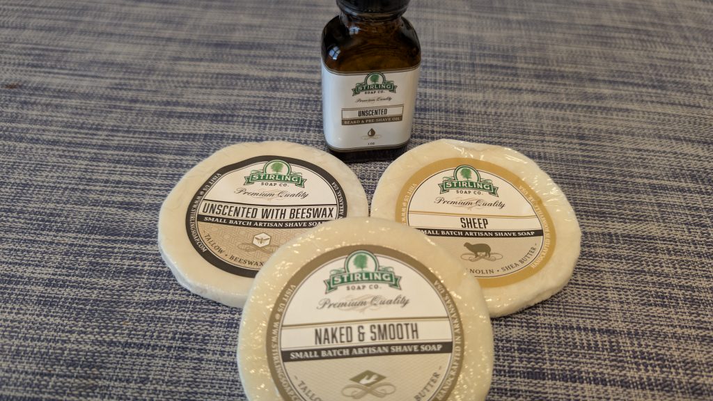10. Stirling Soap Unscented with Beeswax Shave Soap. This Stirling offering performs better than the Naked & Smooth, probably because of the Beeswax. It lathers very well, and offers great lubrication and protection with no noticeable fragrance.