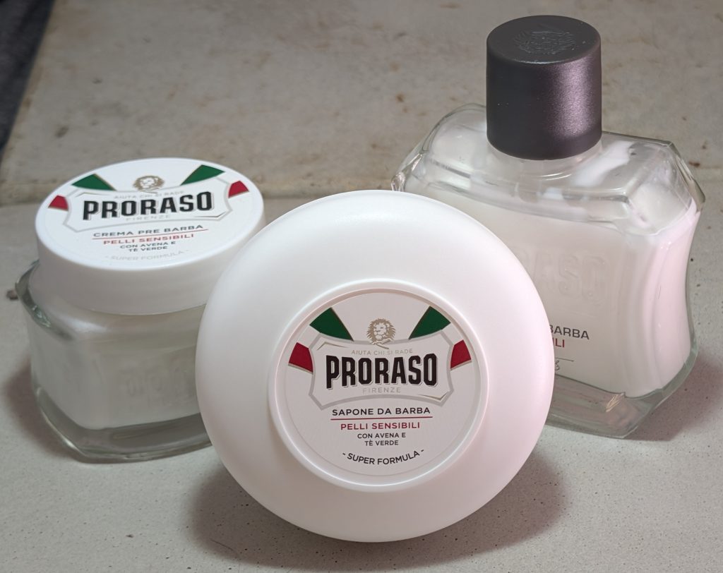 2. Proraso Protective Shaving Cream (blue). With the sample I had of this formula, I initially questioned the fragrance, wondering if I would tolerate it and if I’d grow to like it. Well yes, I have. Very much so. It’s the strongest fragrance I have and like it a lot. In addition, the cream has a similar luxurious feel to the white cream, but not quite as slick or thick, but it still performs extremely well.