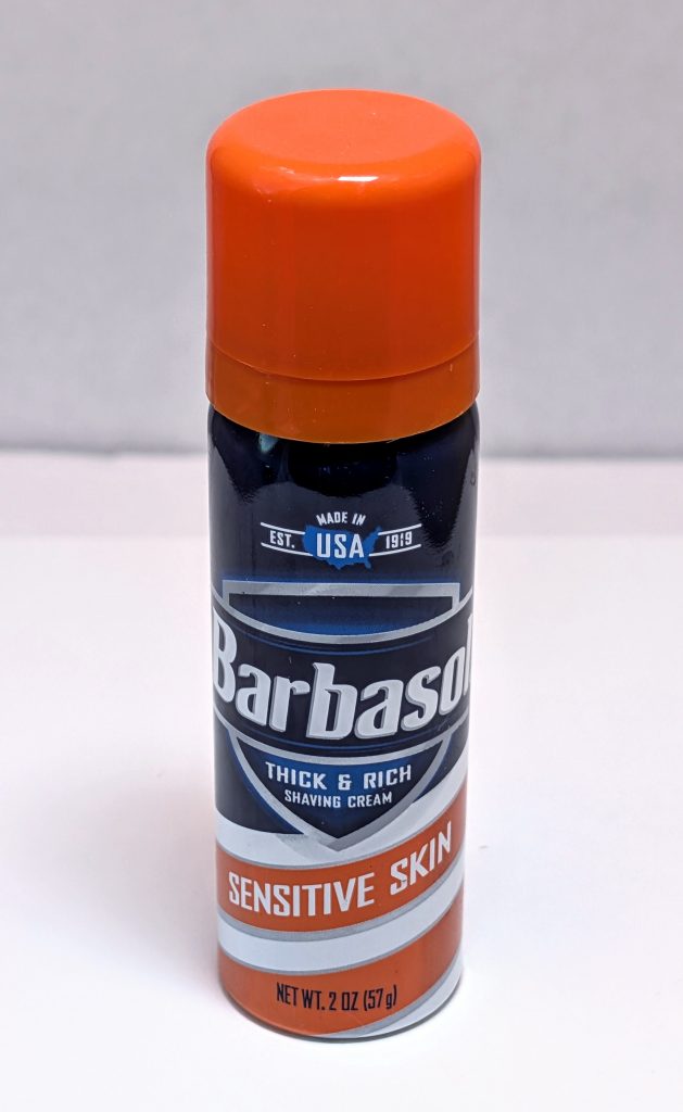 24. Barbasol Sensitive Skin Shave Cream (left). Oddly, I can pin down exactly when I purchased this: I bought it at the grocery store in Gulf Shores, AL, at the corner where we turned to head out of the city toward our rental for our February trip to the Gulf. I still have it, but this was a sample or travel size 2 oz can (I think). Again, this isn’t truly a cream, it’s a foam, and I can’t honestly say that I have proof that it’s any better than the Barbasol original foam, but it had a little lighter fragrance and seemed at the time to glide better.