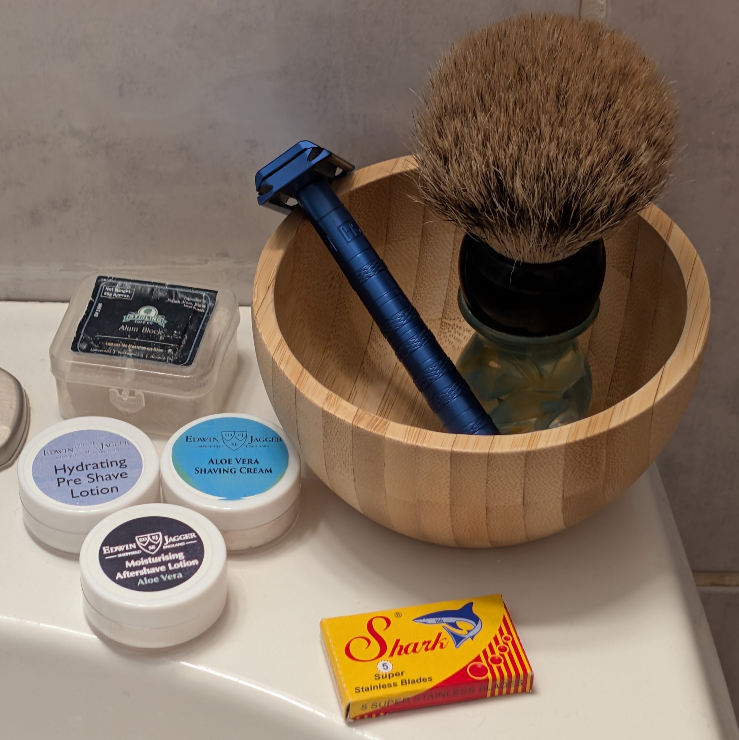 Another problem with the set is a lack of cohesive fragrance. Edwin Jagger’s lathers, pre-shaves and aftershaves come in 3 fragrance or formulation profiles: sandalwood, limes & pomegranate, and aloe vera. I would expect that all three products across the sandalwood and limes & pomegranate lines all smell relatively similar. But nothing in the aloe vera line smells alike. Menthol is the only smell and feel I get off of the pre-shave, soap and aloe is what I get off of the shaving cream, and the lotion smells like, well, an old hand lotion you’d find in your grandmother’s bathroom. I don’t know if they are meant to be complimentary or what, but getting to the last step and having the aftershave smell nothing like the first two products is kind of distracting.