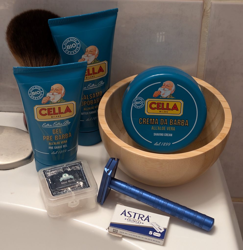 - Stats: 1st shave with the Cella organic pre-shave gel and aftershave balm; 13th almost perfect shave in a row; 51st almost perfect shave