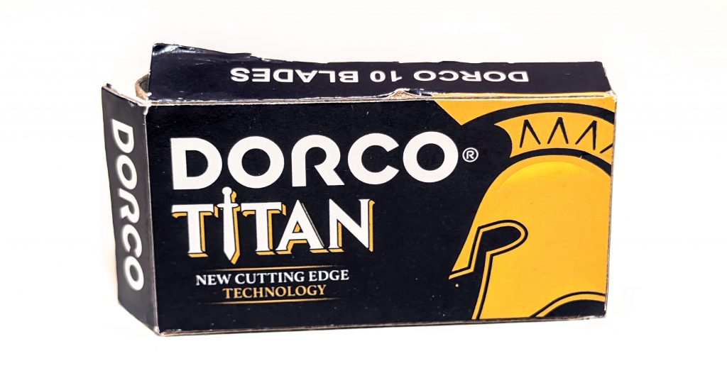 In the last blade pickup, I received a tuck of blades that I honestly hadn’t heard of, but that makes sense, and I’ll explain why in a bit. The blade is the Dorco Titan, and if Dorco sounds familiar, it’s because I have used and really like the Dorco Platinum HQ Red blades.