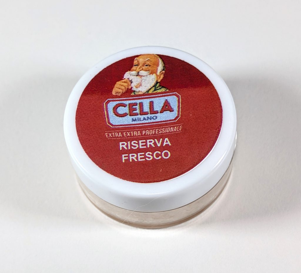 - Soap/Cream/Gel: Cella Professionale Riserva Fresco shaving cream
