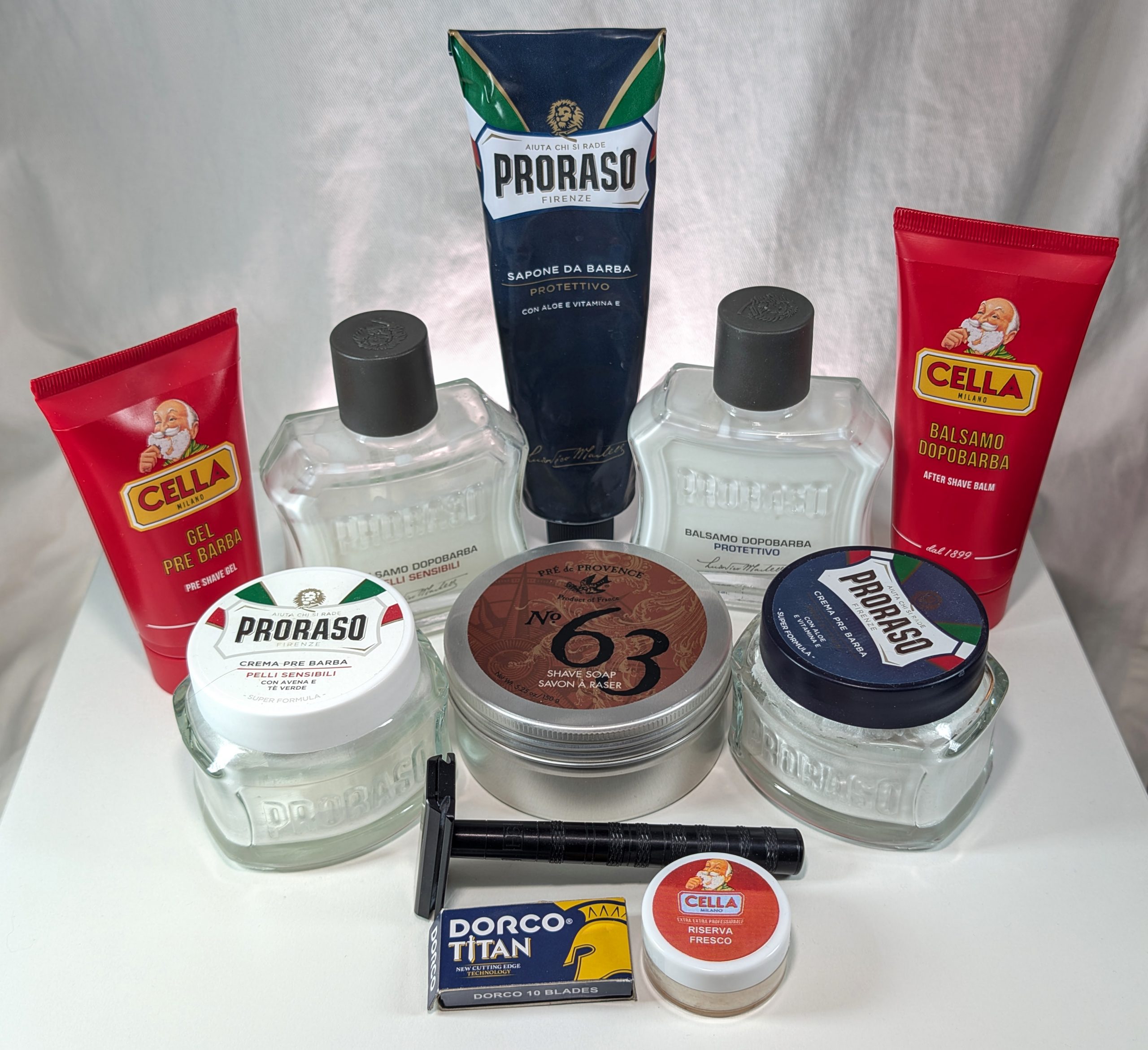 - Pre-Shave: Proraso Protective pre-shave cream (blue)