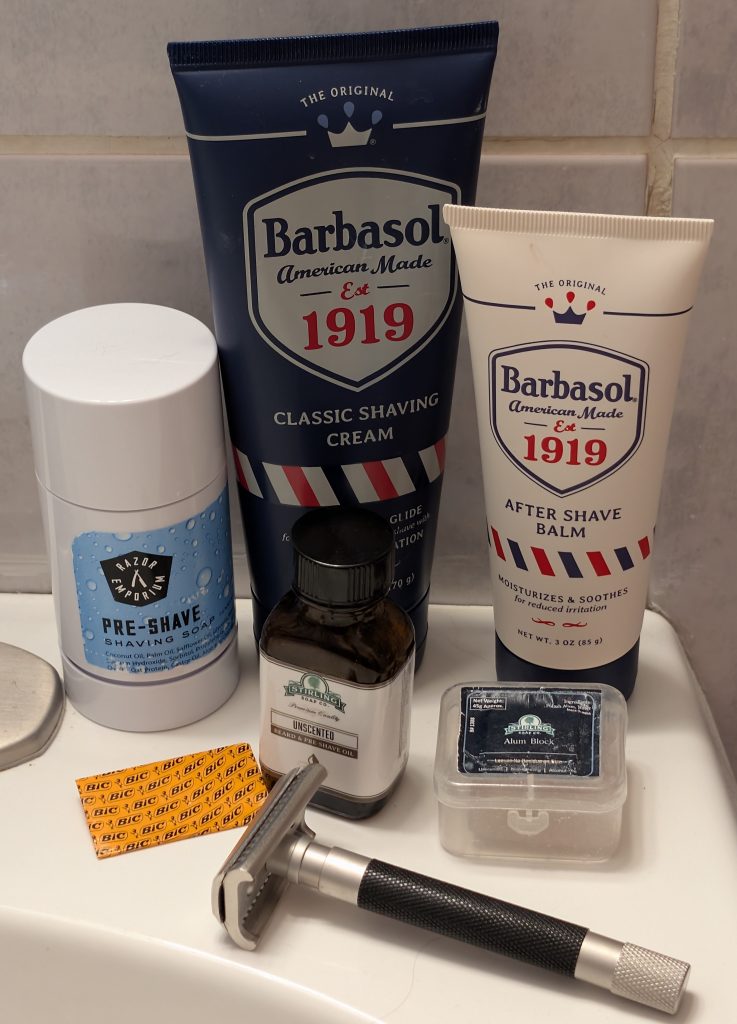 - Soap/Cream/Gel: Barbasol 1919 Classic Shaving Cream