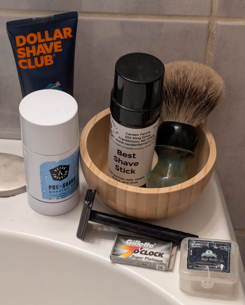 - Soap/Cream/Gel: Carden Farms Clear & Clean shaving soap stick