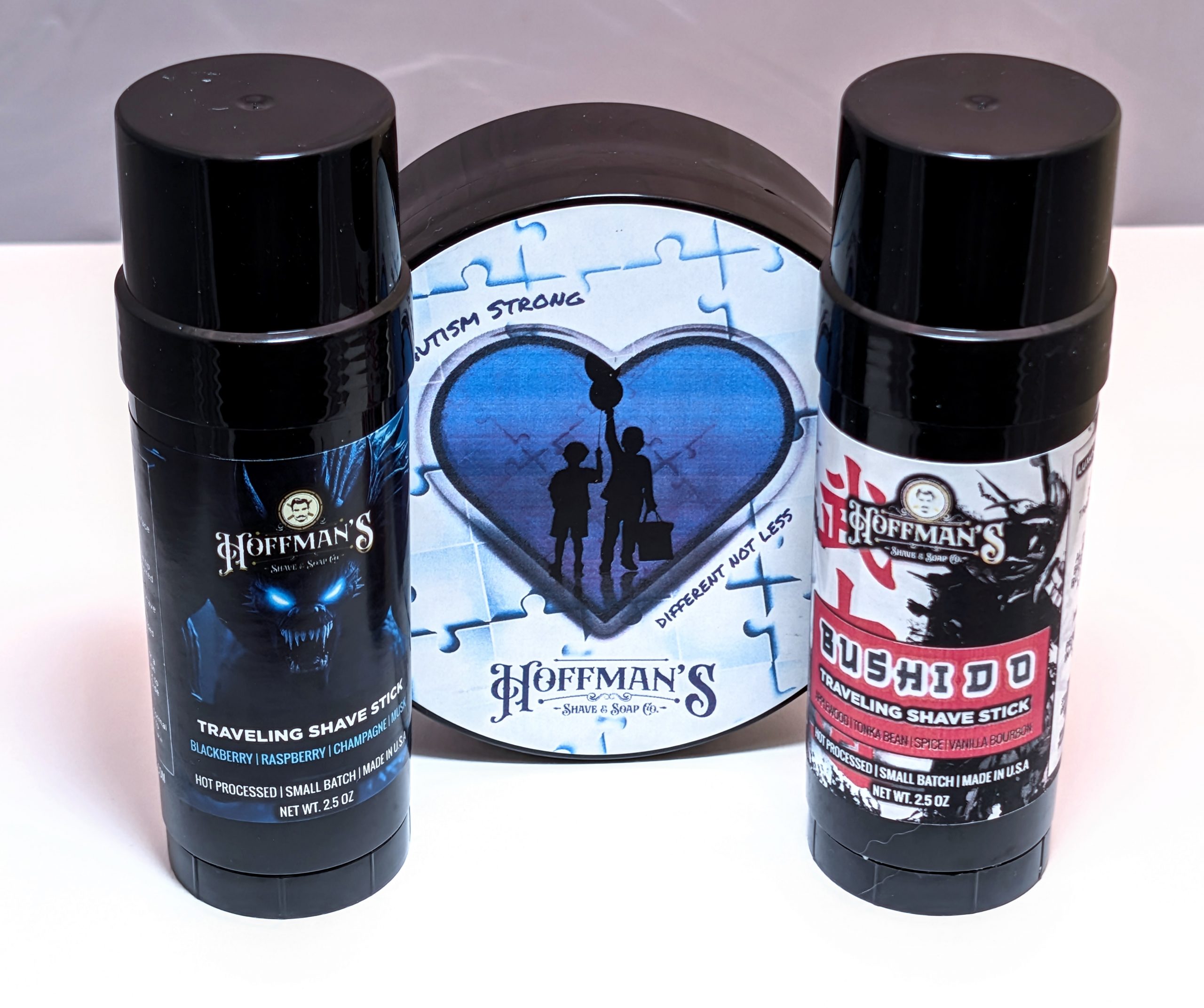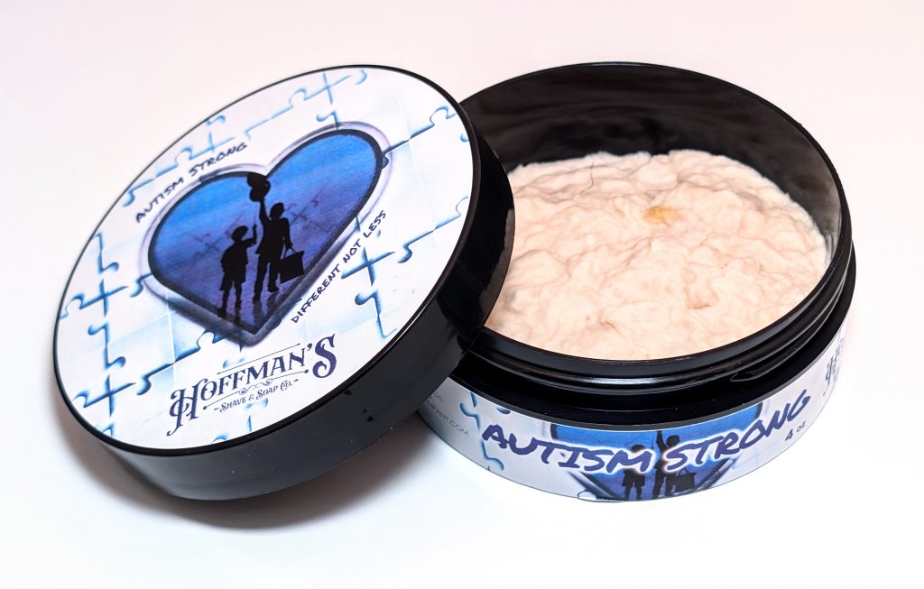 Hoffman’s Grooming Autism Strong shave soap: I’ll be honest here, I don’t recall seeing many Hoffman’s products posted outside of Bushido, so picking another option was kind of blind. While I can put together flavors in my head for cooking, I can’t really put together scents, so it’s hard for me to know if I’ll like a scent, especially when it gets complex.