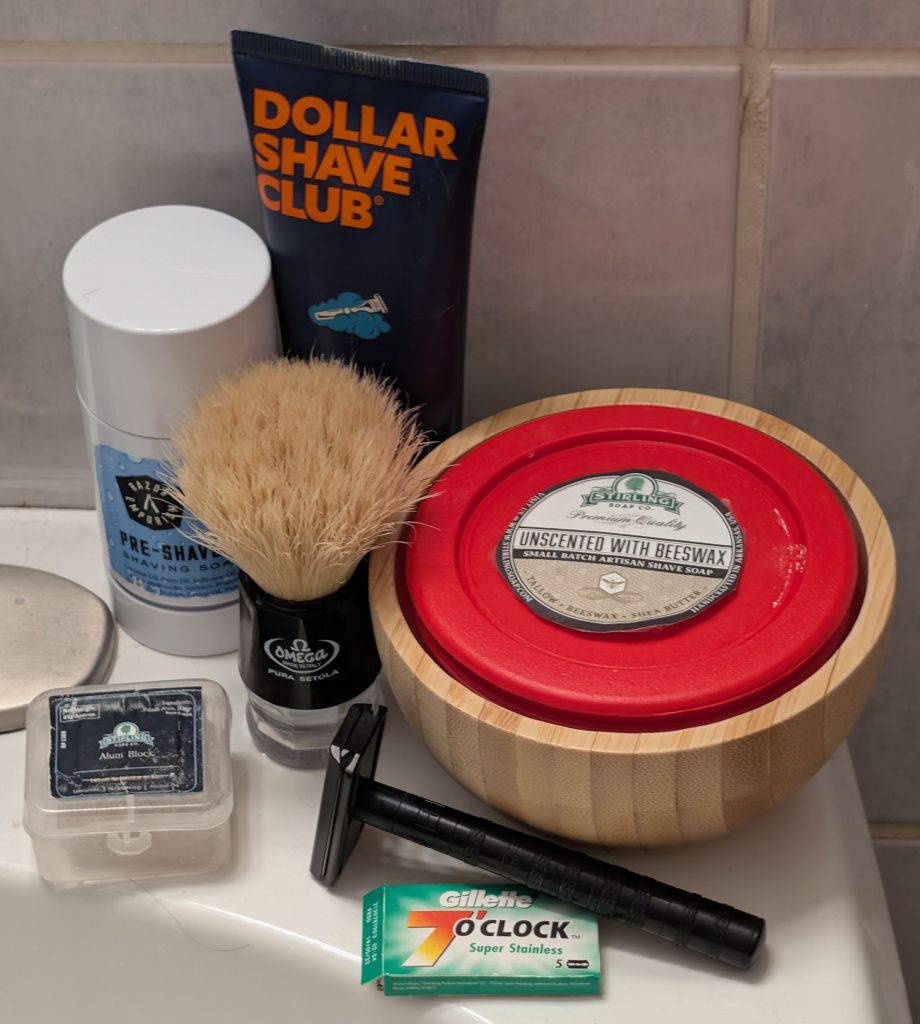 - Soap/Cream/Gel: Stirling Soap Co. Unscented with Beeswax shave soap