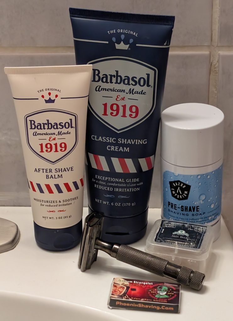 - Soap/Cream/Gel: Barbasol 1919 Classic Shaving Cream